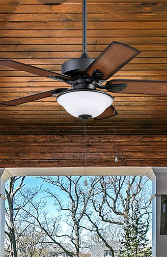 Weatherproof fan installation for patios, decks, and verandas with IP-rated models designed to withstand humidity and coastal conditions.