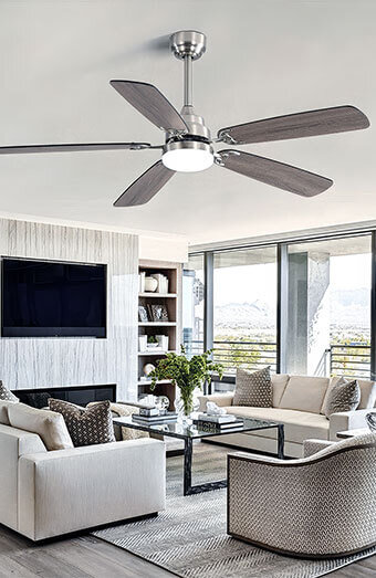 Installation of quiet, energy-efficient DC motor fans with multiple speed settings and reverse modes, perfect for bedrooms and living spaces.